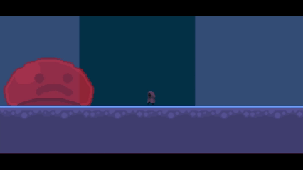 The giant slime tracks the player, evaluates distance, and performs attack behaviors based on proximity.